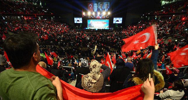 عقد رئيس الوزراء التركي بن علي يلدريم السبت في ألمانيا تجمعا جماهيريا شارك فيه قرابة عشرة آلاف تركي في ألمانيا، للترويج للمشاركة في الاستفتاء حول التحول إلى النظام الرئاسي.