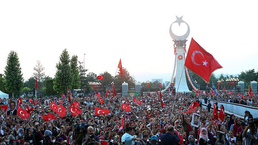 وأكد أردوغان أنهم سيصلون إلى أهدافهم لعام 2023، وقال في هذا الصدد، “سنصل مع شعبنا إلى أهدافنا لعام 2023 ولن يثنينا عن تحقيقها خونة منظمة غولن، ولا قتلة بي كا كا، وداعش، ولا حلفائنا المزعومين الذين يعملون على محاصرتنا على طول حدودنا”.