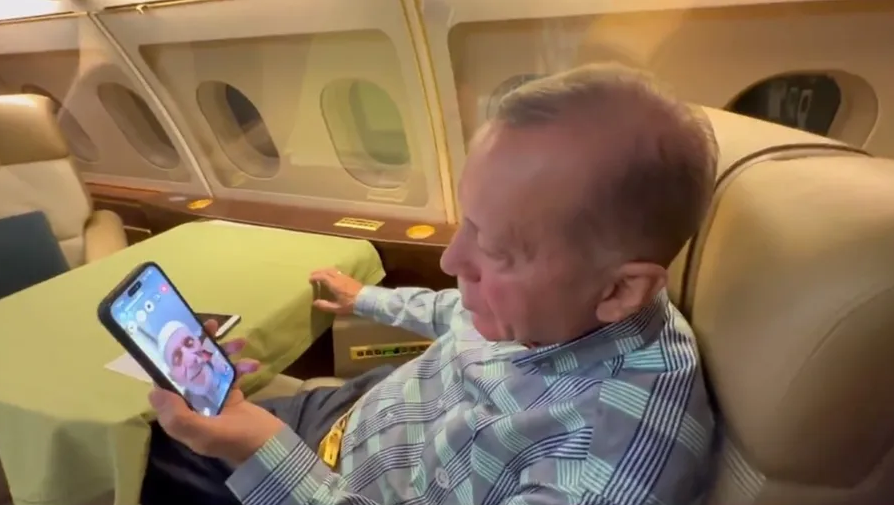 وتحدث أردوغان خلال وجوده على متن طائرة، مع “العم حسين”، البالغ من العمر 85 سنة، عبر مكالمة مرئية.