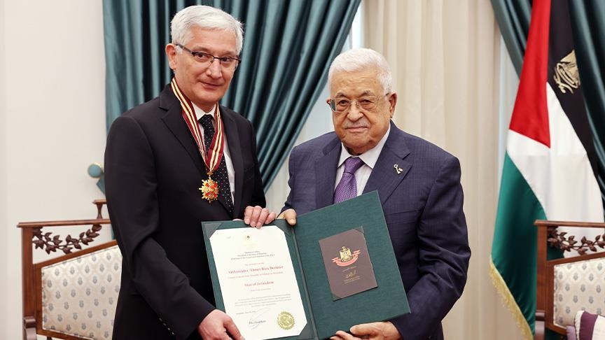 منح الرئيس الفلسطيني محمود عباس، الخميس، القنصل التركي العام في القدس أحمد رضا دميرير، وسام القدس من درجة “نجمة القدس” تقديرا لدوره في تعزيز علاقات البلدين.
