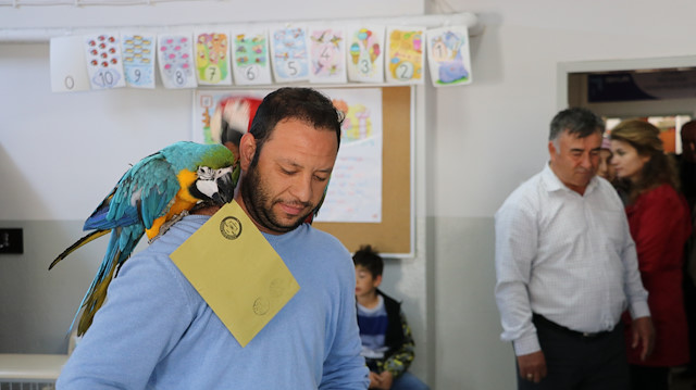 حظي المواطن التركي محمد كيفيلجيم، باهتمام كبير خلال مشاركته في انتخابات الإدارة المحلية، بولاية دنيزلي (غرب)، اليوم الأحد، حيث اصطحب معه ببغائيه إلى مركز الانتخاب.