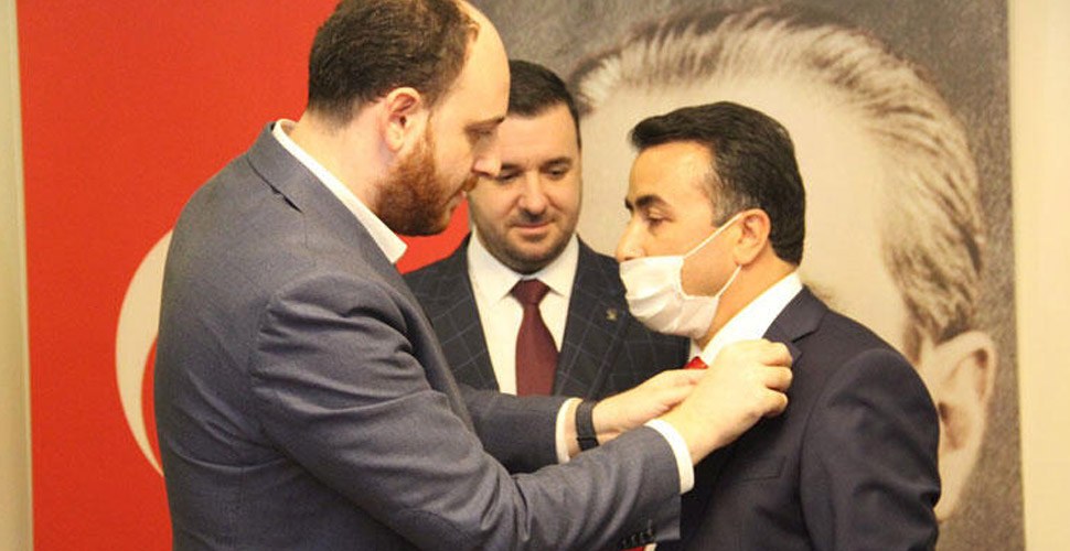 وقلد أحمد بويو كجوموش، رئيس فرع الشباب لحزب العدالة والتنمية في ولاية يالوا، كاتشار، شارة حزب العدالة والتنمية الجديدة.