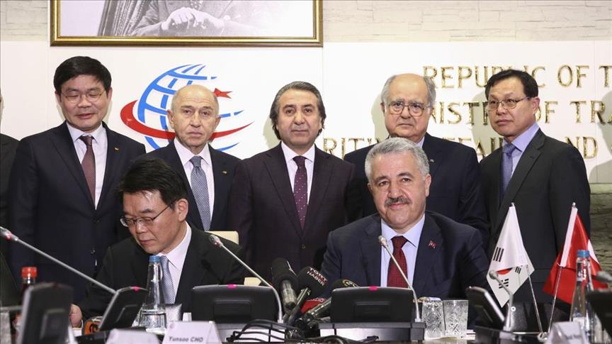 وقع وزير الأراضي والبنية التحتية والنقل في كوريا الجنوبية، “هو أين كانج”، مع وزير المواصلات والاتصالات والنقل البحري التركي، أحمد أرسلان، على مشروع بناء جسر “جناق قلعة 1915” على مضيق الدردنيل (بتركيا).
