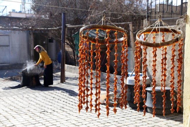 دأب القرويون في ولاية شانلي أورفة جنوب شرقي تركيا، على صناعة حلاوة “دبس العنب السجق مع الجوز” من دبس العنب الذي جمعوه في موسم الصيف.
