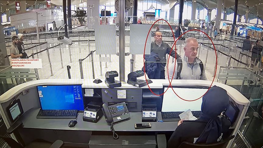 وتظهر المشاهد أيضا، قيام الشخصين المذكورين، بإجراءات جواز السفر لدى الخطوط الخارجية بمطار إسطنبول، بشكل متتال، خلال الساعة 10:02 و10:04، ليركبا بعدها الطائرة المتجهة إلى بيروت.
