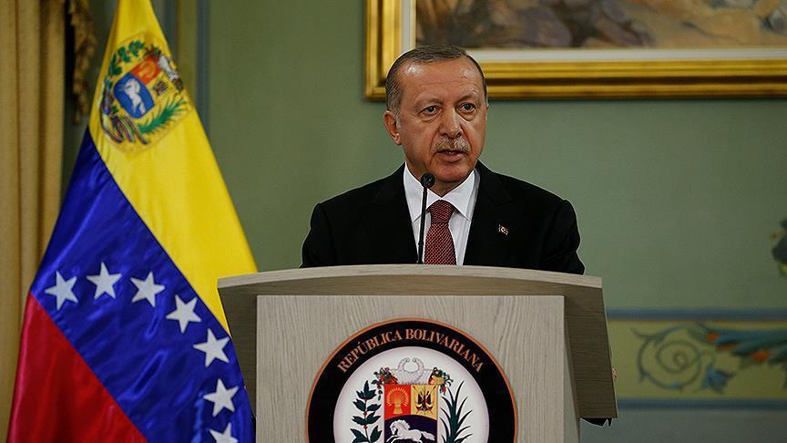 جاء ذلك في مؤتمر صحفي عقده أردوغان، مع نظيره الفنزويلي نيكولاس مادورو، في قصر ميرافلوريس بالعاصمة كاراكاس.