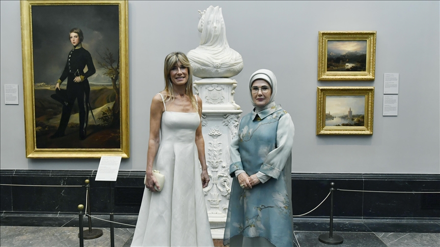 زارت أمينة أردوغان، عقيلة الرئيس التركي رجب طيب أردوغان، متحف ديل برادو في مدريد برفقة ماريا بيجونا غوميز فرنانديز، زوجة رئيس الوزراء الإسباني بيدرو سانشيز.