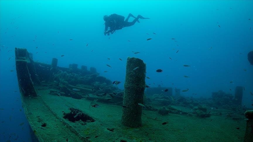 التقطت مشاهد لحطام سفينة “سانت ديدييه” الفرنسية، التي غرقت خلال الحرب العالمية الثانية، في سواحل ولاية أنطاليا التركية.