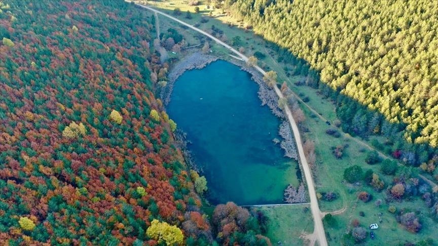تزينت منطقة بحيرة “شيرين ياز” بولاية بولو شمال غربي تركيا، بألوان فصل الخريف.